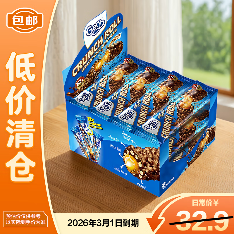 芝莉Gery巧克力涂层香草味夹心棒21g*12能量棒休闲零食【临期清仓】