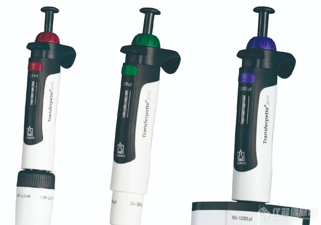 更多量程规格:300ul、2.5ml和1250ul除此之外,为了适应更多的实验场景需求,本次新品Transferpette® pro移液器新增了300ul、2.5ml的单道移液器以及1250ul的多道移液器,让不一样的需求的实验人员都能找到适配的移液解决方案。